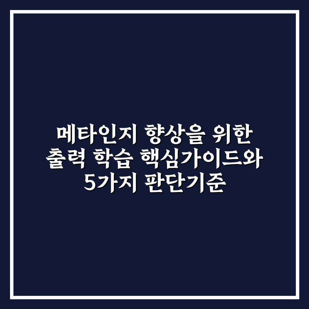 메타인지 향상을 위한 출력 학습 핵심가이드와 5가지 판단기준 2026년 03월 26일 작성자: 인포 메타인지 향상을 위한 출력 학습 방법과 핵심 판단기준을 통해 효과적인 자기주도 학습 전략을 익히고 적용할 수 있습니다