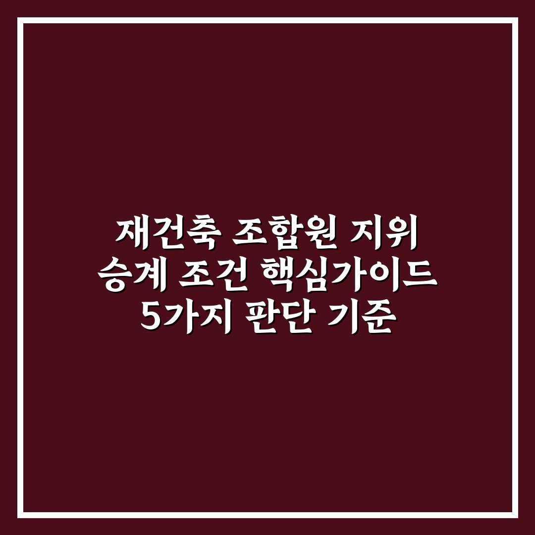 재건축 조합원 지위 승계 조건 핵심가이드 5가지 판단 기준 2026년 03월 23일 작성자: 인포 재건축 조합원 지위 승계 조건의 핵심 판단 기준 5가지를 쉽게 이해하고 정확하게 확인할 수 있는 실질적 가이드입니다