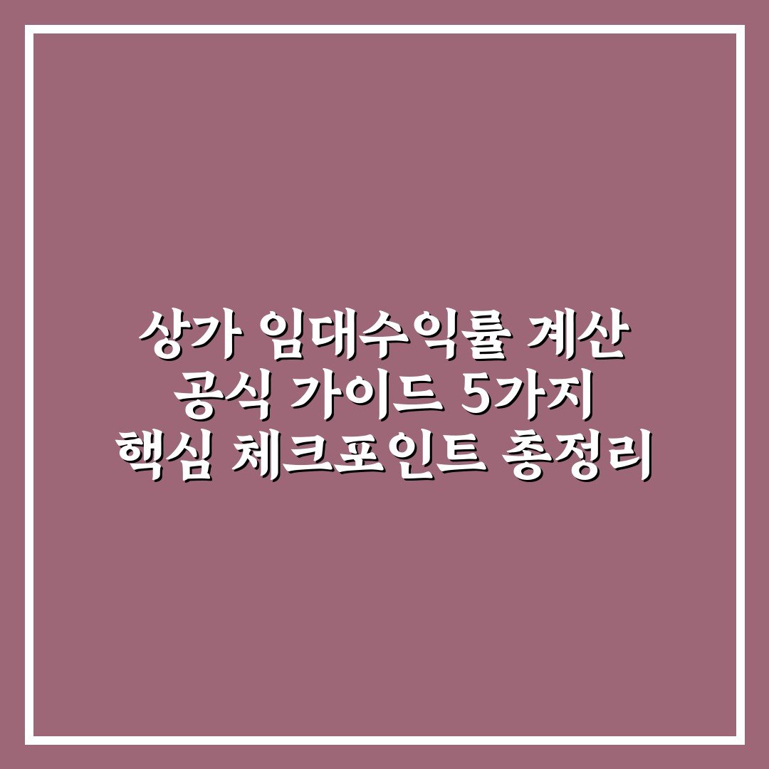 상가 임대수익률 계산 공식 가이드 5가지 핵심 체크포인트 총정리 2026년 03월 28일 작성자: 인포 상가 임대수익률 계산 공식 가이드를 통해 핵심 체크포인트 5가지를 쉽게 이해하고 정확한 투자 판단에 필요한 정보를 확인하세요