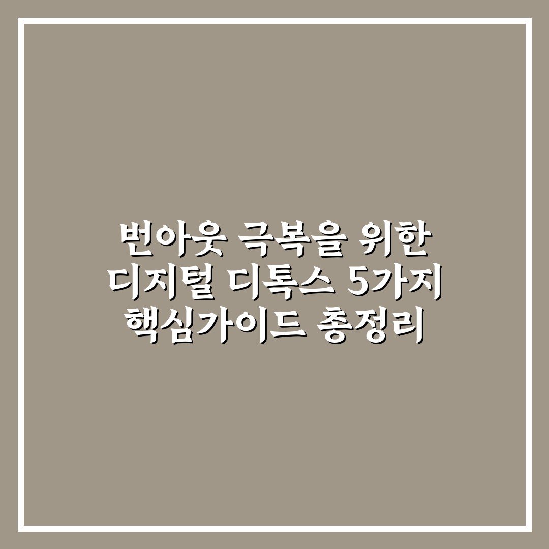 번아웃 극복을 위한 디지털 디톡스 5가지 핵심가이드 총정리 2026년 03월 27일 작성자: 인포 번아웃 극복을 위한 디지털 디톡스 방법을 통해 효과적인 휴식과 집중력 회복 전략을 알아보고 실생활에 적용하는 핵심 가이드를 제공합니다